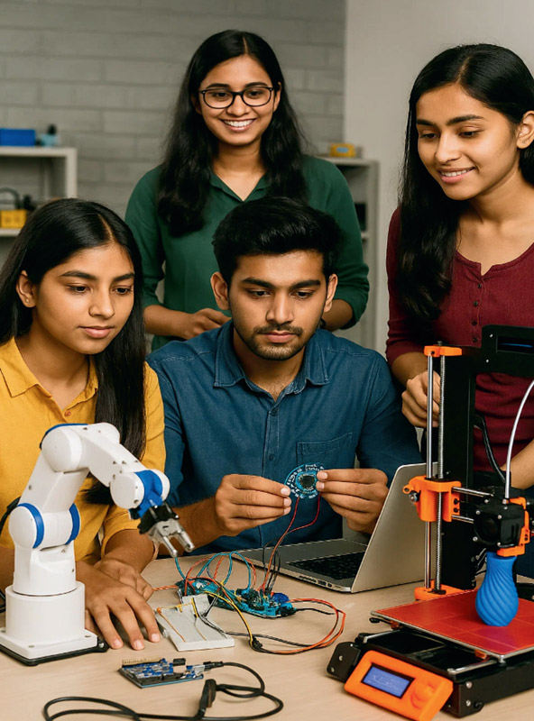 The world is on the brink of a technological revolution, with Industry 4.0 expected to generate a global economic impact of $15.7 trillion by 2030 (WEF). India’s manufacturing sector is rapidly evolving, projected to contribute 25% of the country’s GDP by 2025. However, the industry faces a crucial skills gap, with 85% of technical graduates lacking competencies required for Industry 4.0 applications (NSDC 2024).